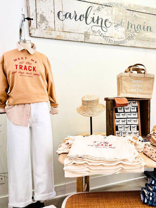 Introducing the Saratoga Collection — a curated line that celebrates Saratoga Springs in every season. From autumn leaves on North Broadway to snowy strolls downtown, spring blooms in Congress Park to summer afternoons at the track, each piece is designed to capture the unique charm of our hometown year-round. Featuring custom-designed t-shirts and sweatshirts by the Caroline and Main team, this collection is always evolving — we’re constantly dreaming up new designs inspired by the Saratoga lifestyle. But don’t wait too long — our pieces are made in small batches and rarely stay in stock for long!