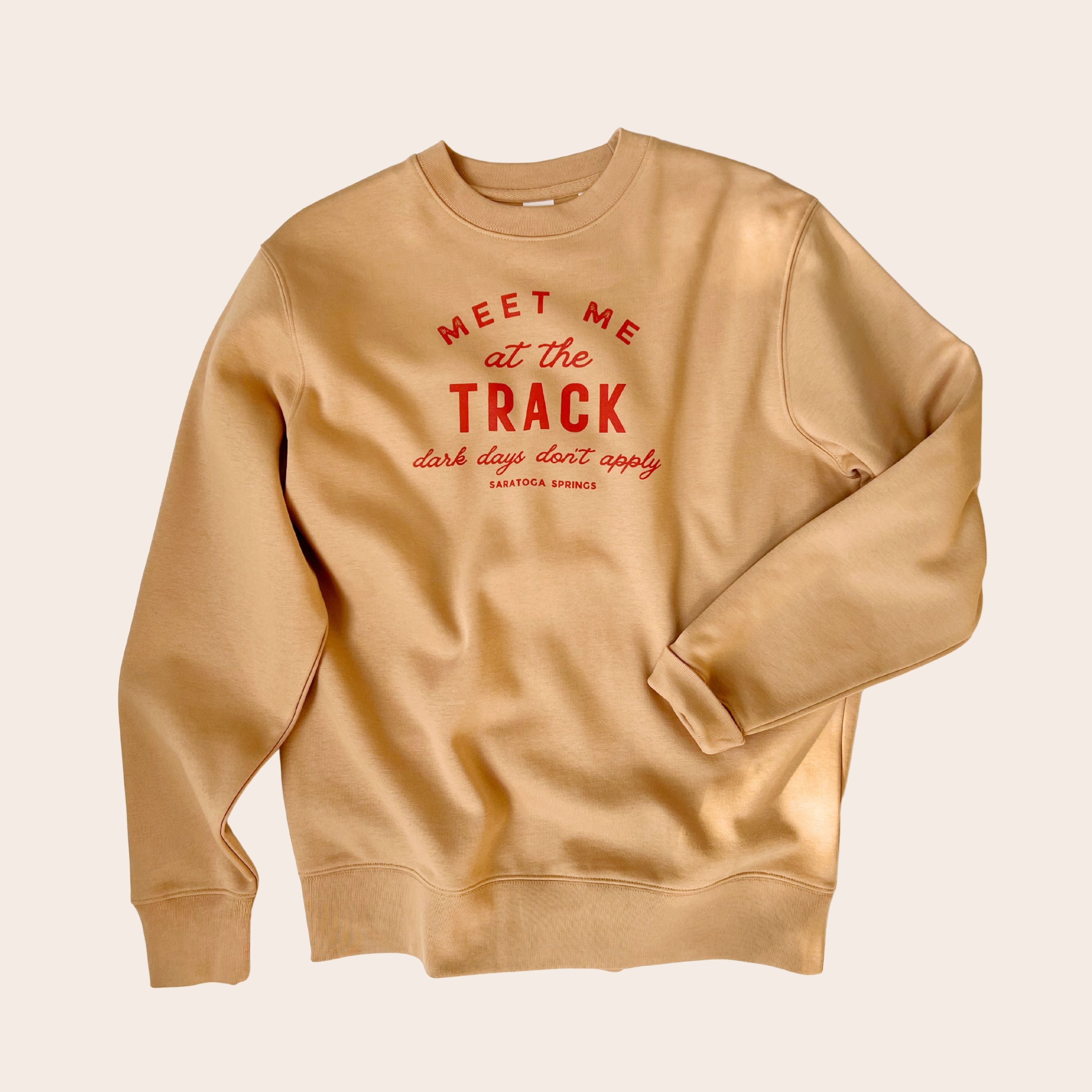 Get track-ready in comfort and style with our custom Crewneck Sweatshirt in the warm, wear-anywhere Latte shade. Designed by the Caroline and Main team and inspired by Saratoga’s timeless race-day charm, this cozy essential features the phrase: