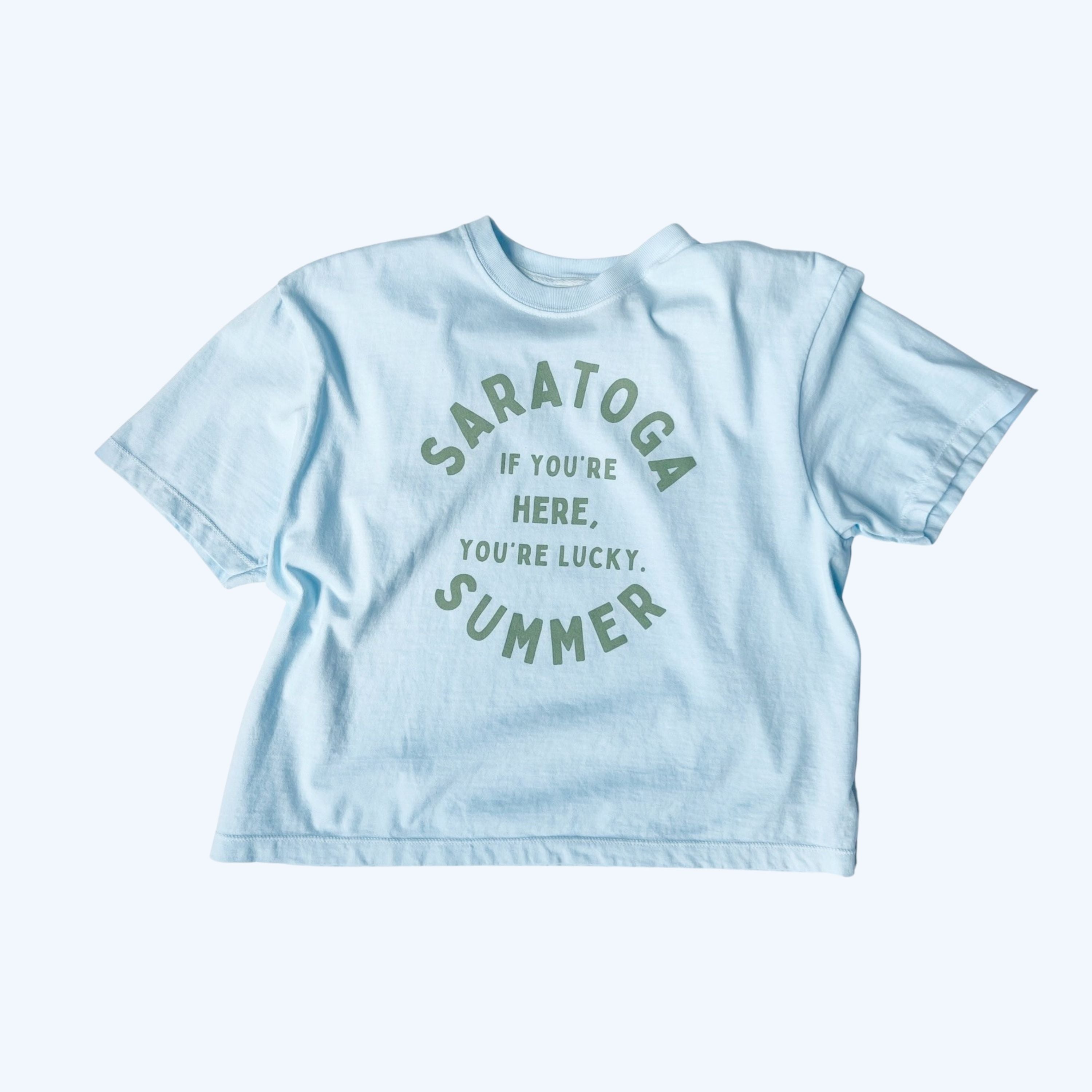 If you're here, you're lucky. That’s the Saratoga summer spirit — and now it’s written on your new favorite tee!