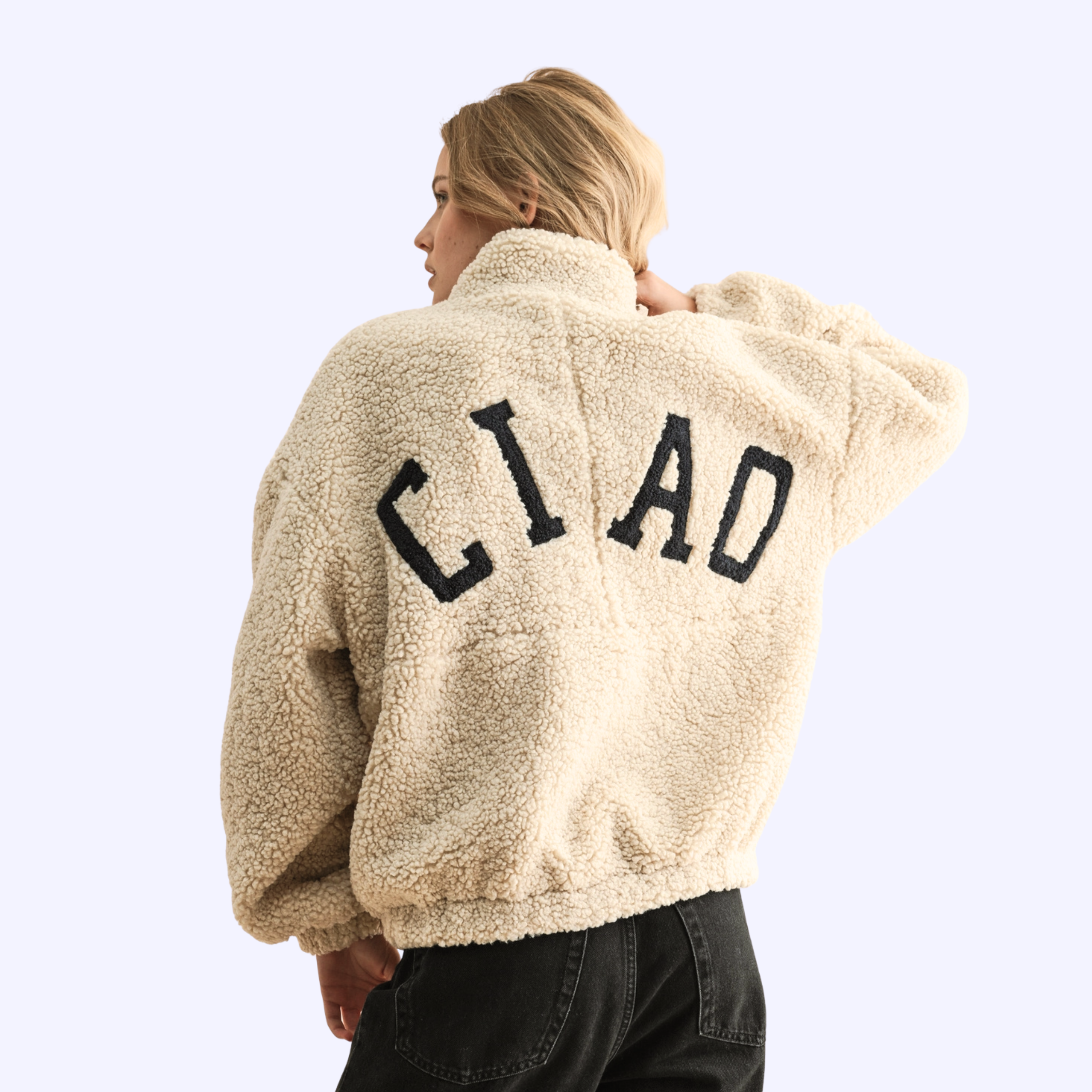 Say CIAO to chilly days in this cozy half zip sherpa pullover! Soft, warm, and oh-so-snuggly, it’s perfect for layering on crisp fall mornings. The bold “CIAO” lettering on the back adds a fun, unexpected twist—because staying warm shouldn’t be boring.